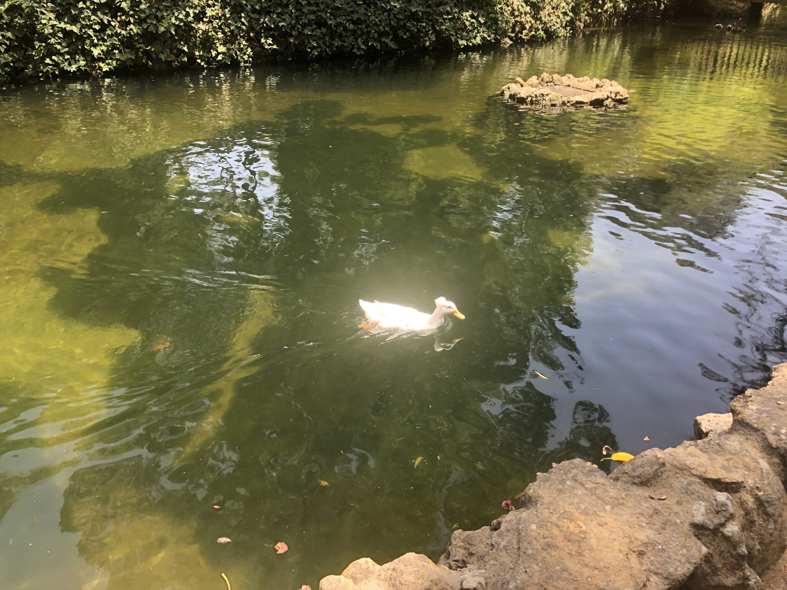 Then there was a SECOND knock at the door. I’m not going to lie to you as I opened the door, I was confused. My two brothers were standing in the hallway outside of my room. Both were breathing heavily, sweating like to the degree that I thought they threw themselves in the rooftop pool, fully clothed. They were holding large jugs (3 and 4 liters-containers) of water. One of the two of them looked at me and said instinctively to me “Really…? You have food? Idiot...” The other one was a tad more vulgar as he pushed me out of my doorway and then slammed the water jugs they bought for me on the desk in my room. He then asked me “where the f*** did you get snacks and water?” So, I responded “across the street from the hotel in DÃa. And why do you both smell like you fell in a swamp?” To which my brother responded with “BULL***T! Move! NOW!” Then he pushed me out his path again on his way to my fridge while proceeding to rip open the minibar fridge to grab a water and then consume it, disrespectfully. Followed by a second water being consumed, with fury. “You’re full of s***, I hope you enjoy PAYING for these waters…@$$**** ” was muttered in my direction. The situation, and conversation, got progressively more vulgar and devolved quite rapidly, so instead of laying out a word-for-word reenactment and re-opening some the scars that therapy helped clear up… Here’s a peaceful picture I took in a park a day or so later of a duck-like creature hanging out in the shade by a water-filled aquifer. 🤣