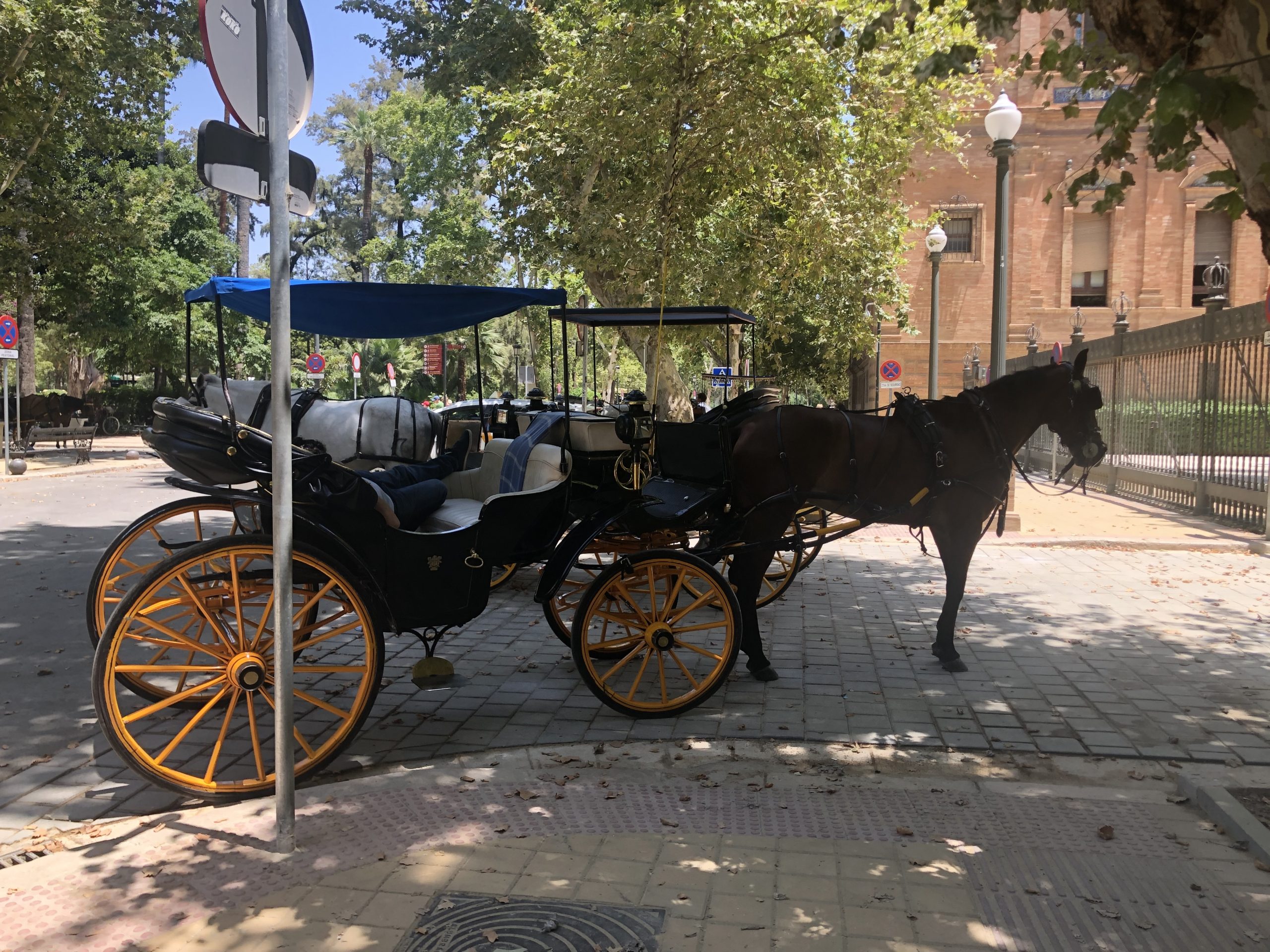 Connected to the Plaza de España, is Parque de MarÃa Luisa. This park was really nice and tranquil. It had a mix of greenery, flowers, Glorietas, horse drawn carriages, trees that provided shade, statues, aquifers, a small waterfall and just too much else to list here. Overall, the park provided some definite relief from the sun on the warm summer days that we visited in Sevilla. Here are a few pics: